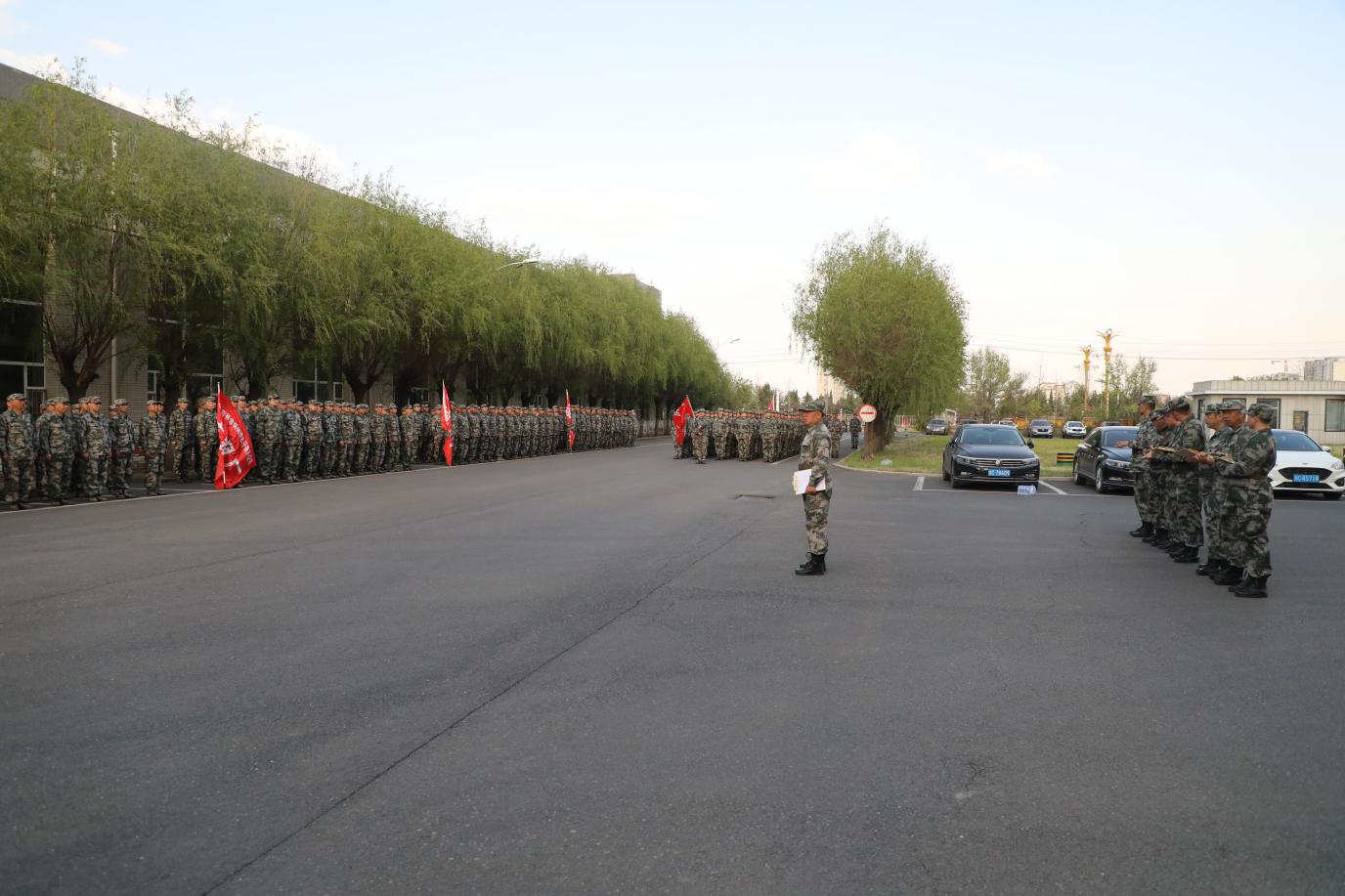 風(fēng)輕云淡,傍花隨柳。5月7日金鋼股份全員軍訓(xùn)在盎然春意中拉開(kāi)帷幕。千余名員工在以大地為訓(xùn)練場(chǎng),與春風(fēng)同行,與綠柳共舞,在嚴(yán)格的軍事化訓(xùn)練中錘煉意志,在自然的懷抱中凝聚合力。
